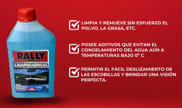 Lavaparabrisas x 500 cc especialmente formulado para una limpieza profunda y efectiva del parabrisas. Elimina grasa, insectos, polvo y suciedad sin dañar las gomas ni la pintura del vehículo. Diluir en agua destilada. Ideal para todo tipo de autos, camionetas y utilitarios.